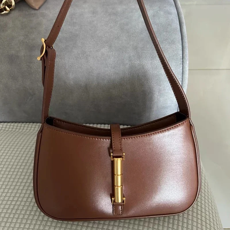 Découvrez le charme intemporel du sac baguette en cuir véritable, conçu pour la femme contemporaine qui apprécie le style et la qualité. Fabriqué à partir de cuir de vachette de deuxième couche, ce sac combine une allure minimaliste avec une touche de sophistication grâce à ses finitions soignées et son fermoir doré élégant.