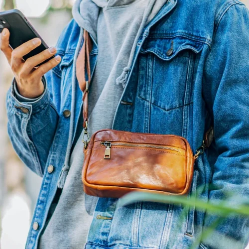 Sac à Bandoulière en Cuir Véritable pour Homme – Compact et Antivol, Style Chest Bag en Cuir Crazy Horse